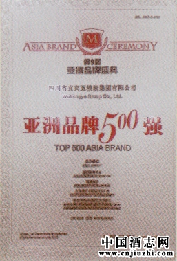 经亚洲品牌测评体系专家系统委员会(ABAS)评议,五粮液在企业品牌、产品品牌、创新能力、品牌的知名度、美誉度与市场占有率等指标处于行业领先地位,荣获排行榜第12名,比去年上升1名,再次蝉联酒类行业冠军。五粮液集团公司总经理、股份公司董事长刘中国再次荣获本届“亚洲品牌年度人物”大奖。