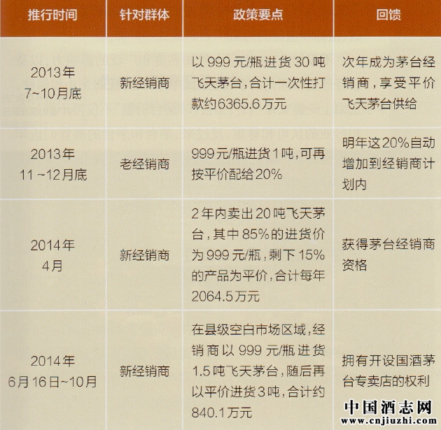 到目前为止茅台共推行了4次经销商政策,具体要点如下表所示: