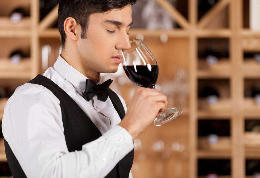 红葡萄酒的鉴赏,一般从酒的色、香、味入手。其全套过程包括:看、闻、尝、吐。