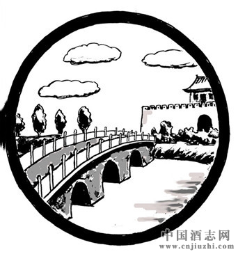 1946年,国营衡水制酒厂成立,衡水老白干酒的注册商标图案随之产生。如图所示,图案里画着蓝天白云,和下面古老的石桥和古城门楼浑然一体,组成圆形商标,充分显示了衡水古城的风情和文化。图案是从原十八酒坊的众多字号商标图案中选出来的,据老人们讲,最初的草图设计是来自天津,与后来天津飞鸽自行车的第一件商标设计图案均出自一个人之手。